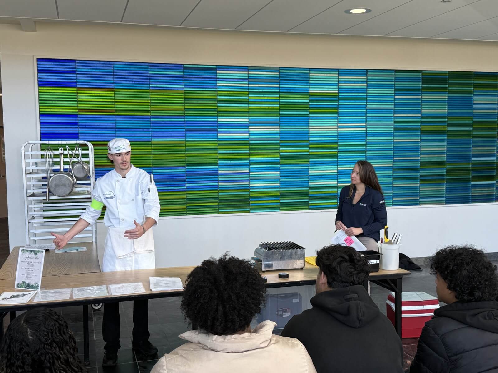 Colton H., Enfield High School Senior , and Nicole Mendieta, Sysco.Thank you to the incredible industry professionals who spent their morning inspiring the next generation of hospitality leaders with their culinary demonstrations, public speaking & social media training and learning how flavors are created:
