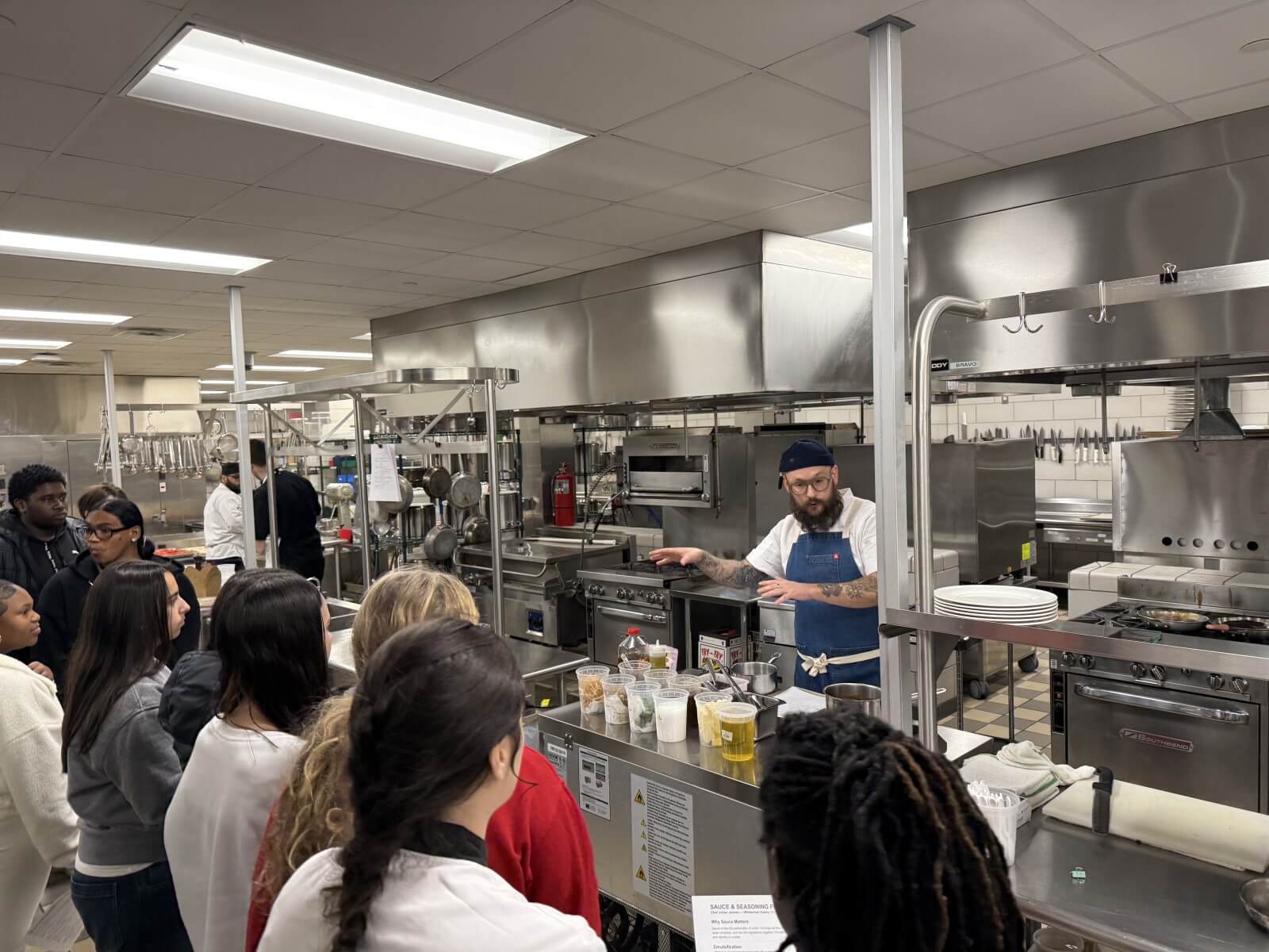 A standout moment of the day was welcoming Colton H., a ProStart student from Enfield High School, who helped lead a session on workstation setup, sharing practical tips and competition strategies from a student perspective.