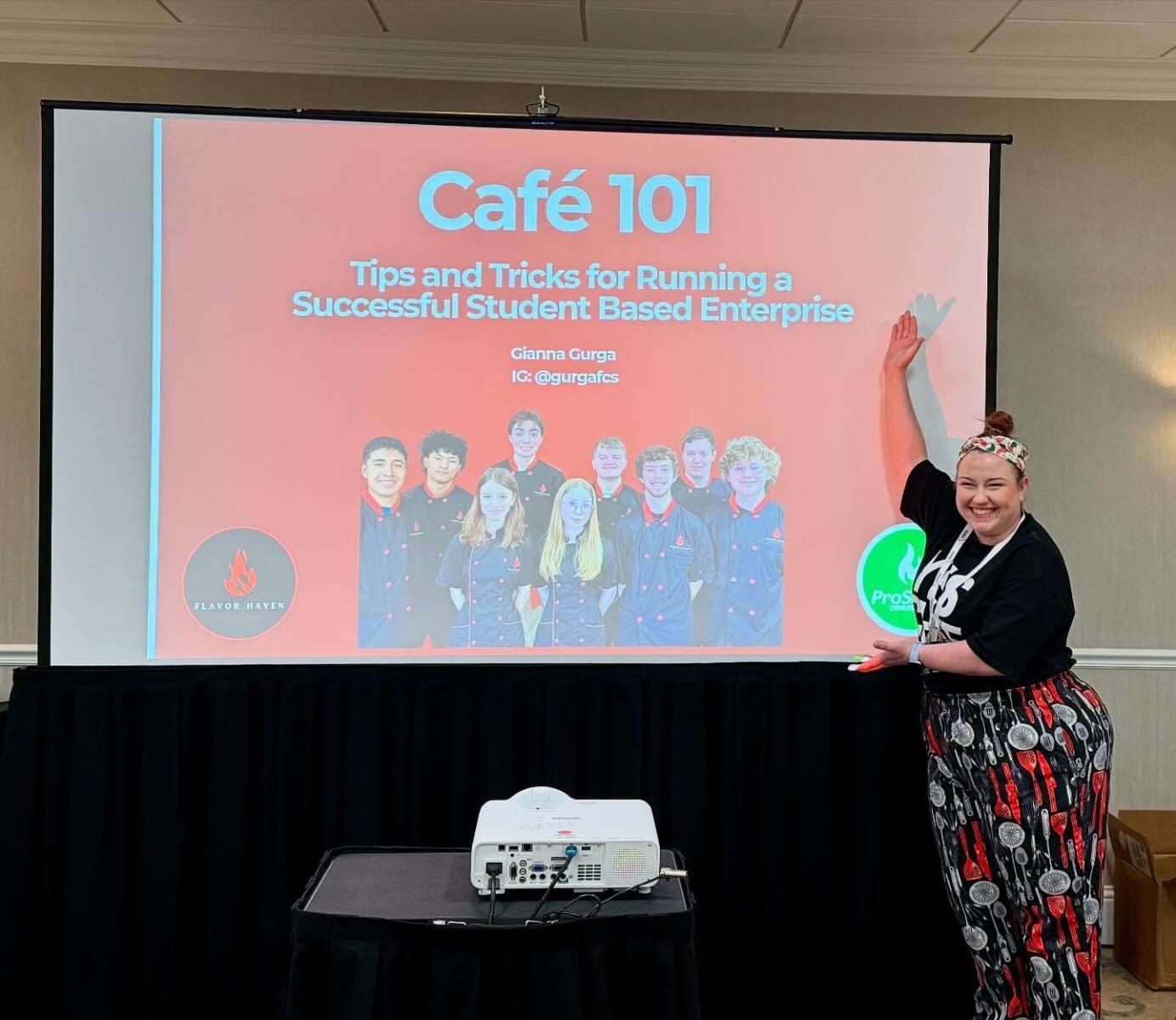 This year, I also had the opportunity to lead my own session at the PD. My workshop, Café 101: Tips and Tricks for Running a Successful Student-Based Enterprise, focused on helping teachers launch or improve their school cafés and student-run businesses. I shared practical strategies for organization, marketing, and daily operations – along with lessons learned from my own experience. Attendees left with ready-to-use tips, templates, and creative ideas to make their student enterprises more profitable, educational and fun.